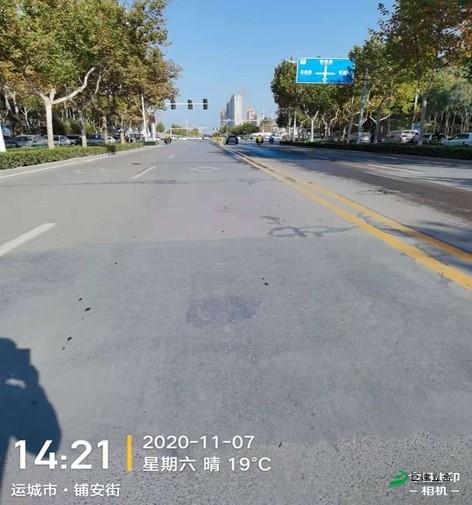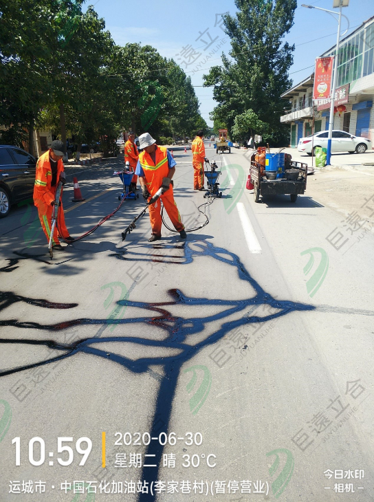 2019年11月13日我公司受运城市市政管理处邀请,在运城市盐湖区铺安街处理沥青路面网状裂缝