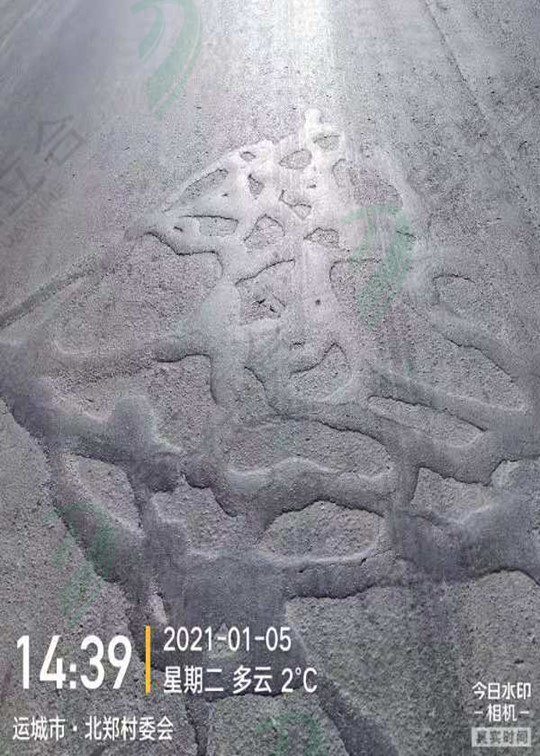 2020年9月19日立合剂处理龟网裂缝10个月效果图,立合剂历经冬季的严寒、历经夏季的酷暑,路面裂缝依然充实饱满,充分得到了客户的认可。
